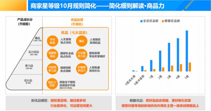 本次调整预计于2023年10月10日(周二)正式生效,本次调整仅影响10月10日起商家的预测星等级以及11月5日及之后更新的评定星等级,不影响10月5日更新的评定星等级。本期迭代与新优品模型同步上线生效,请商家同步关注优品模型变化。