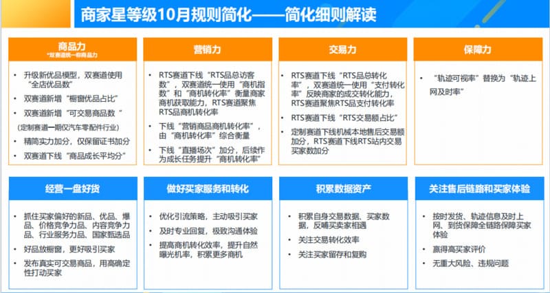 升级4-考核标准更多元:单一考核维度-->关注买家偏好的各项能力